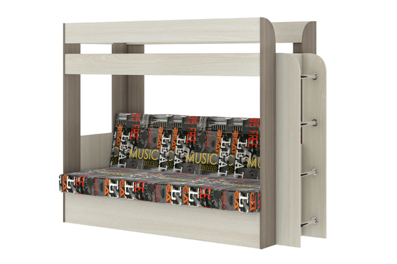 Кровать детская Фанк НМ 041.50 дуб сонома, белый с мягкой спинкой Дабл велутто 16 велюр бежевый