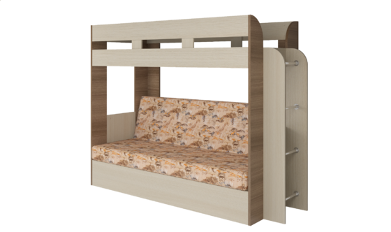 Кровать детская Акварель НМ 041.50-01 дуб сонома, капучино с мягкой спинкой Дабл велутто 16 велюр бежевый