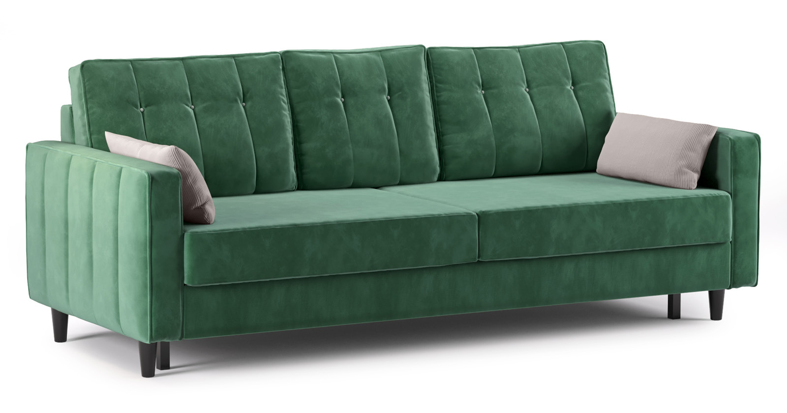 Диван-кровать прямой Арно ТД 566 велюр Лаки 20 хвойный зеленый, Vertical 910 молочно-серый