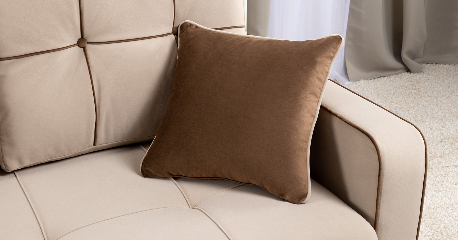 Модные диваны Черри Н порадуют поклонников современного стиля. Контрастные канты, пуговицы и декоративные подушки делают этот диван ярким акцентом интерьера.