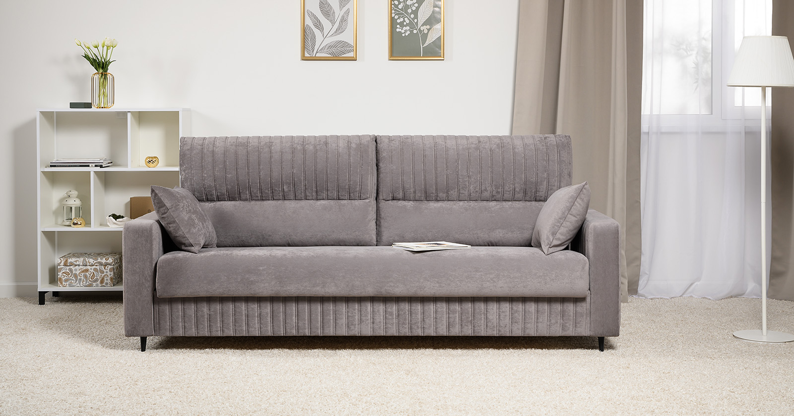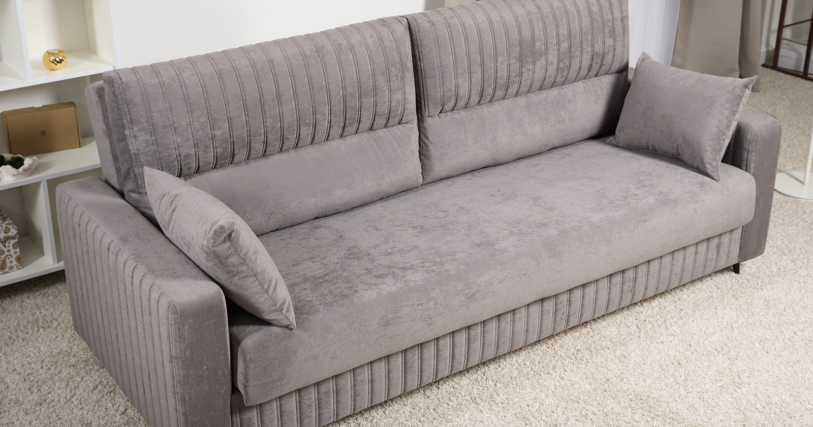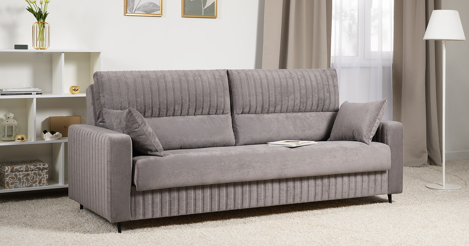 Диван-кровать прямой Изабель ТД 737 велюр Романс вижион серо-бежевый
