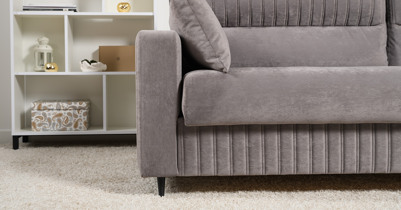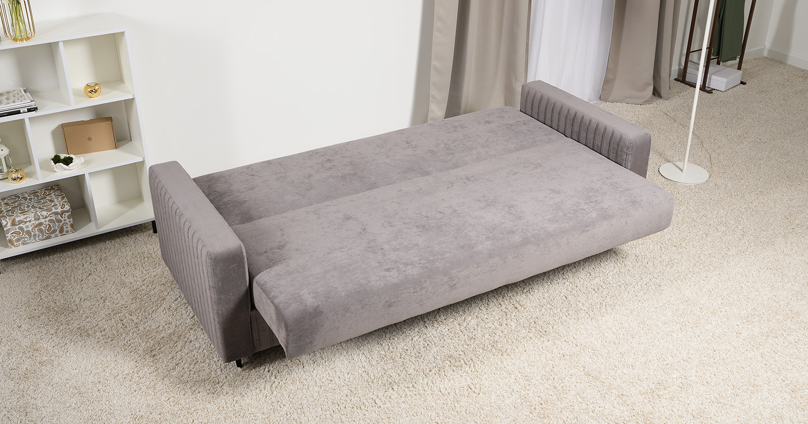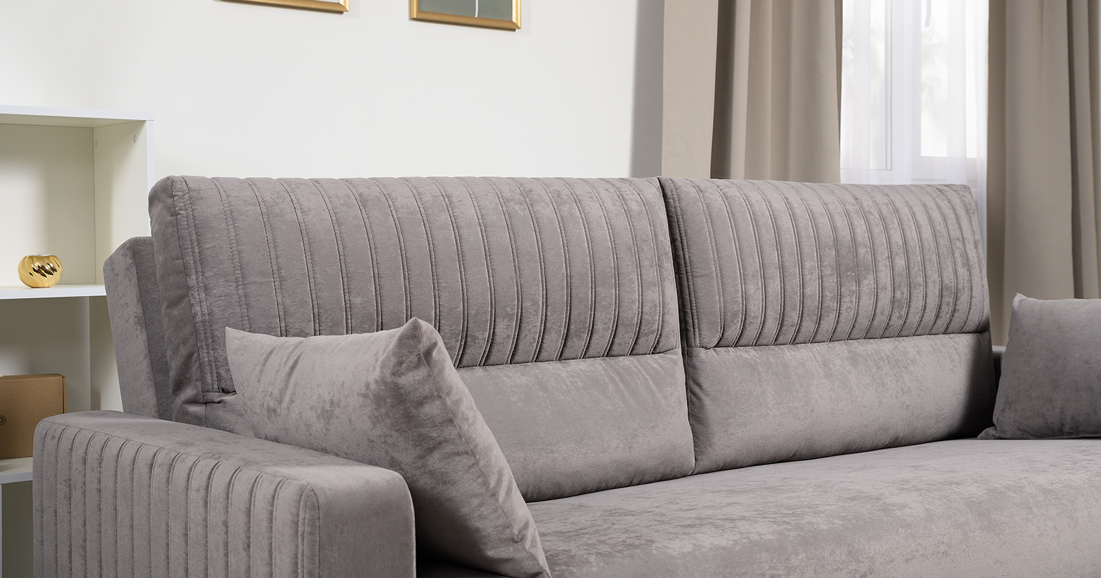 Диван-кровать прямой Изабель ТД 737 велюр Романс вижион серо-бежевый