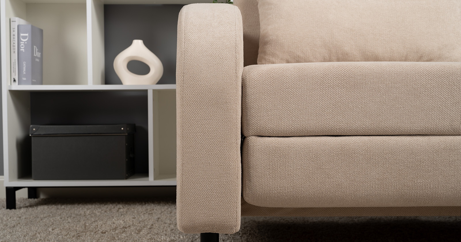 Диван-кровать прямой Тэдди 1502 композиция 1, букле Pique 006 бежевый, модульная система
