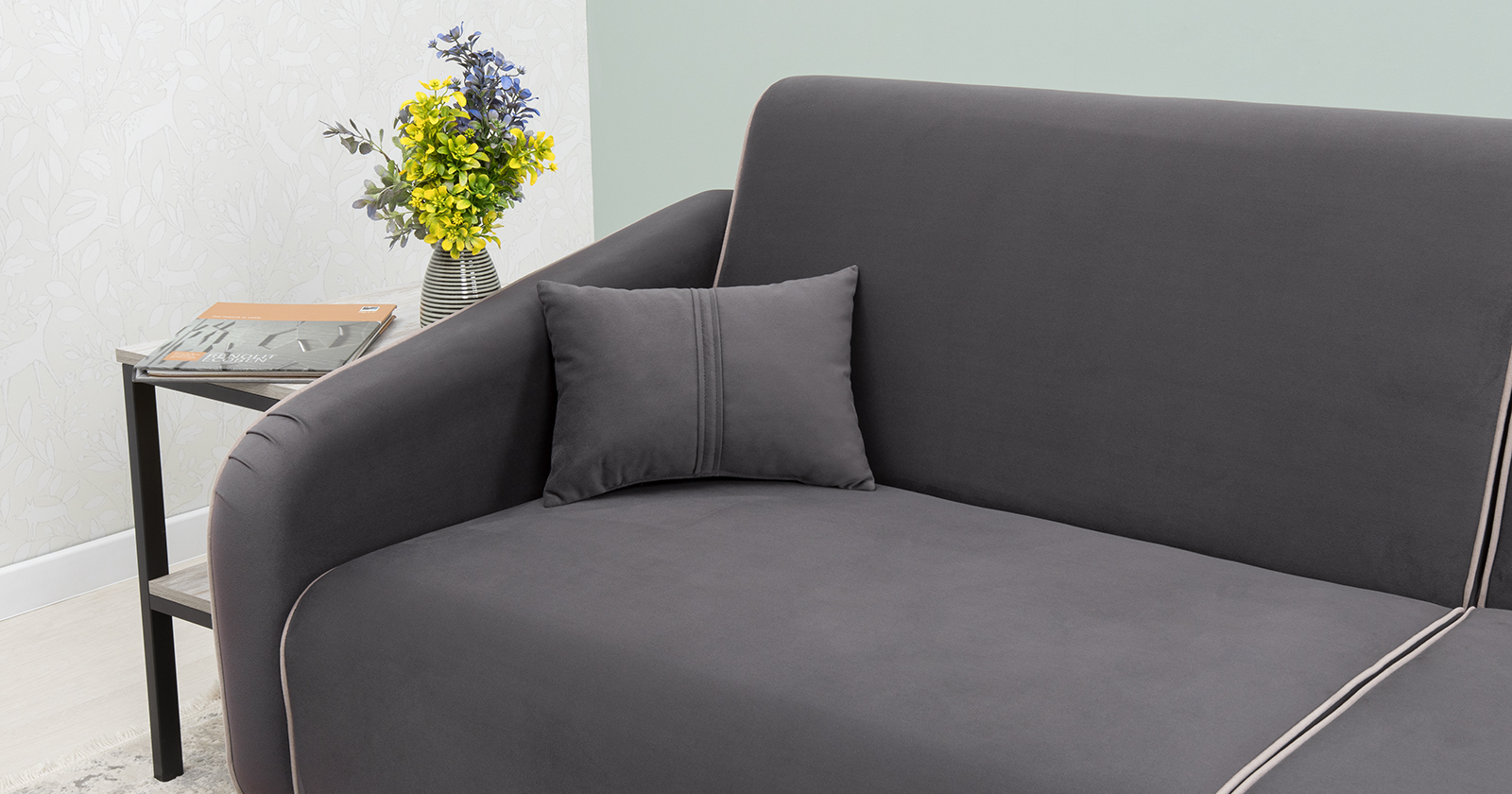 Диван-кровать прямой Ноэль ТД 447 велюр темно-серый, светлый кварцевый серый
