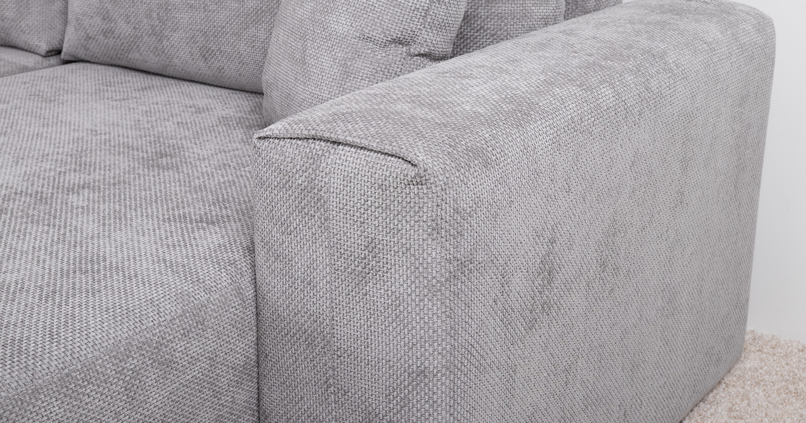 Диван-кровать угловой Тэдди 1506 композиция 2, букле Pique 011 серый, модульная система, сборка на любую сторону