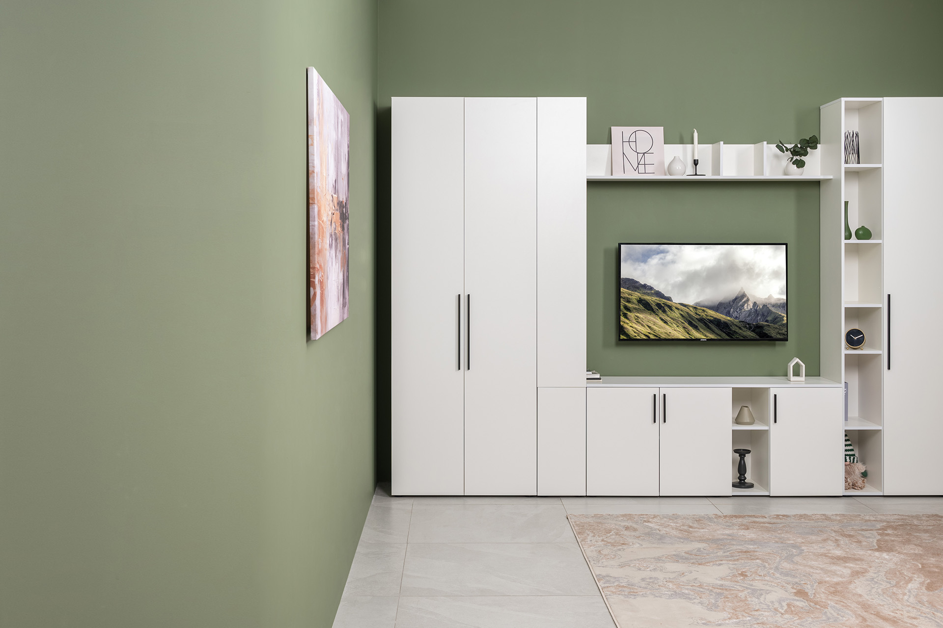 Гостиная Эйр композиция 1 белый PE шагрень, собирается на любую сторону