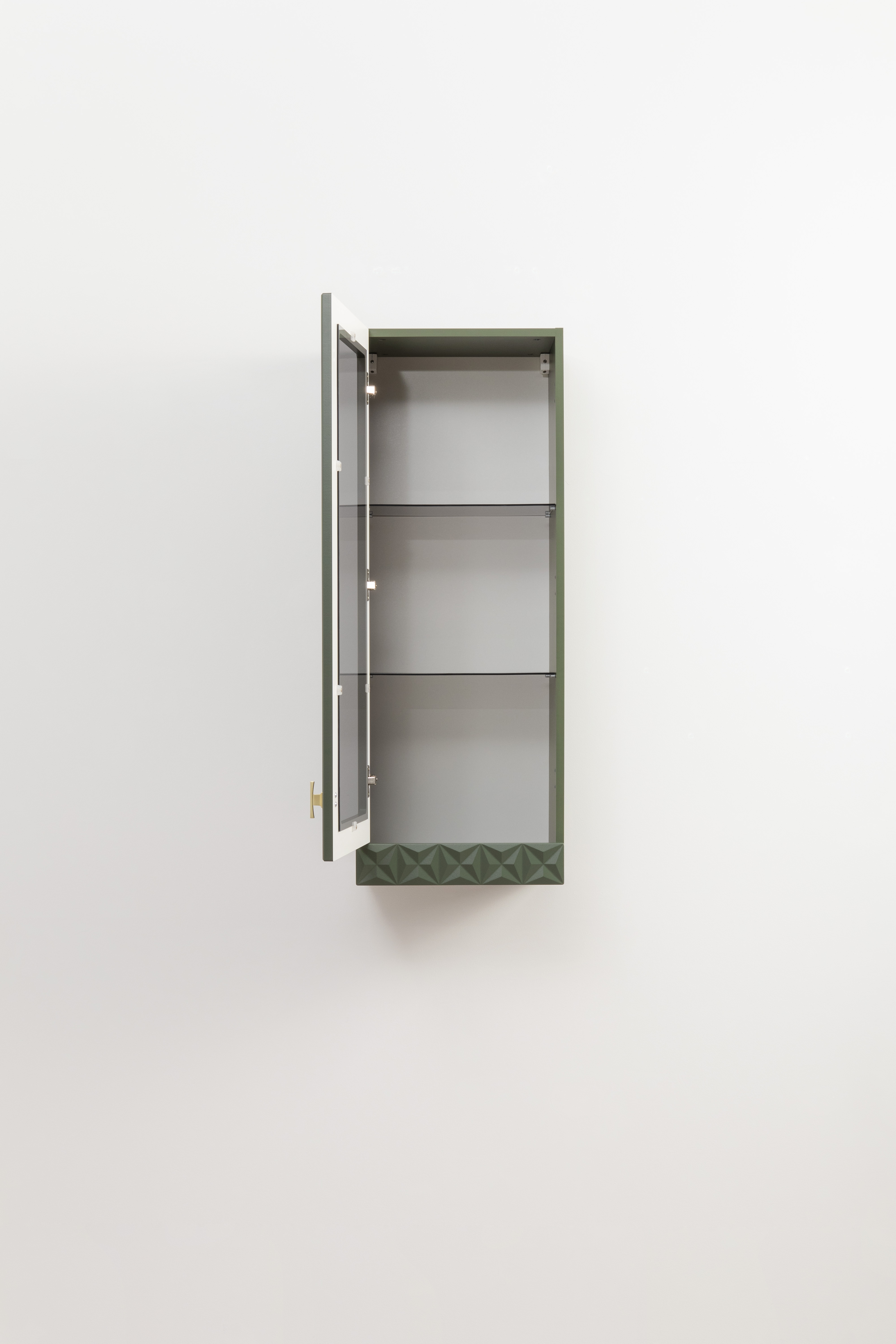 Шкаф-витрина Марион 16.397.02 дымчатый зеленый K521, олива шагрень AG 1050 ПВХ
