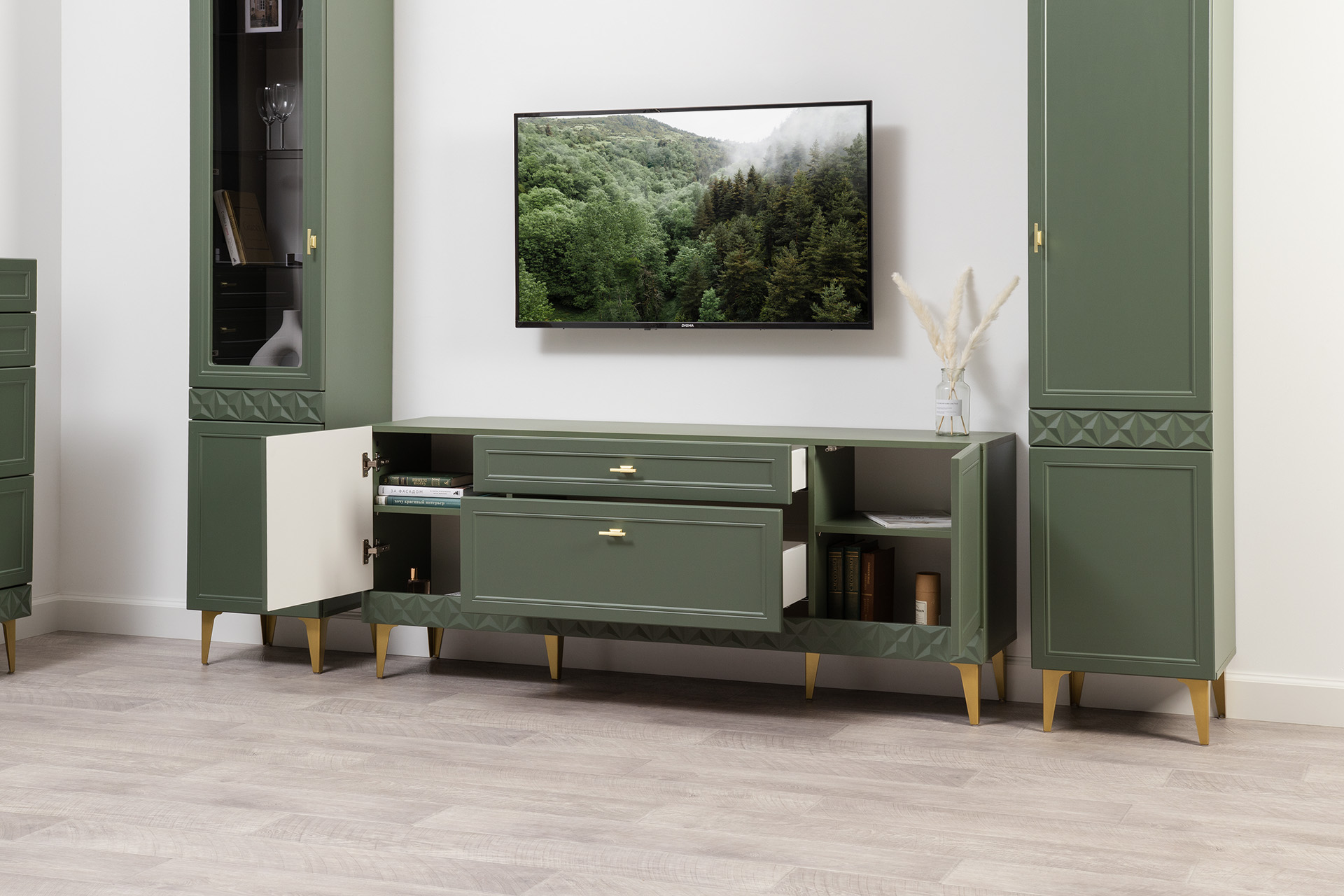 Комод Марион 16.249 дымчатый зеленый K521, олива шагрень AG 1050 ПВХ, белый PE шагрень