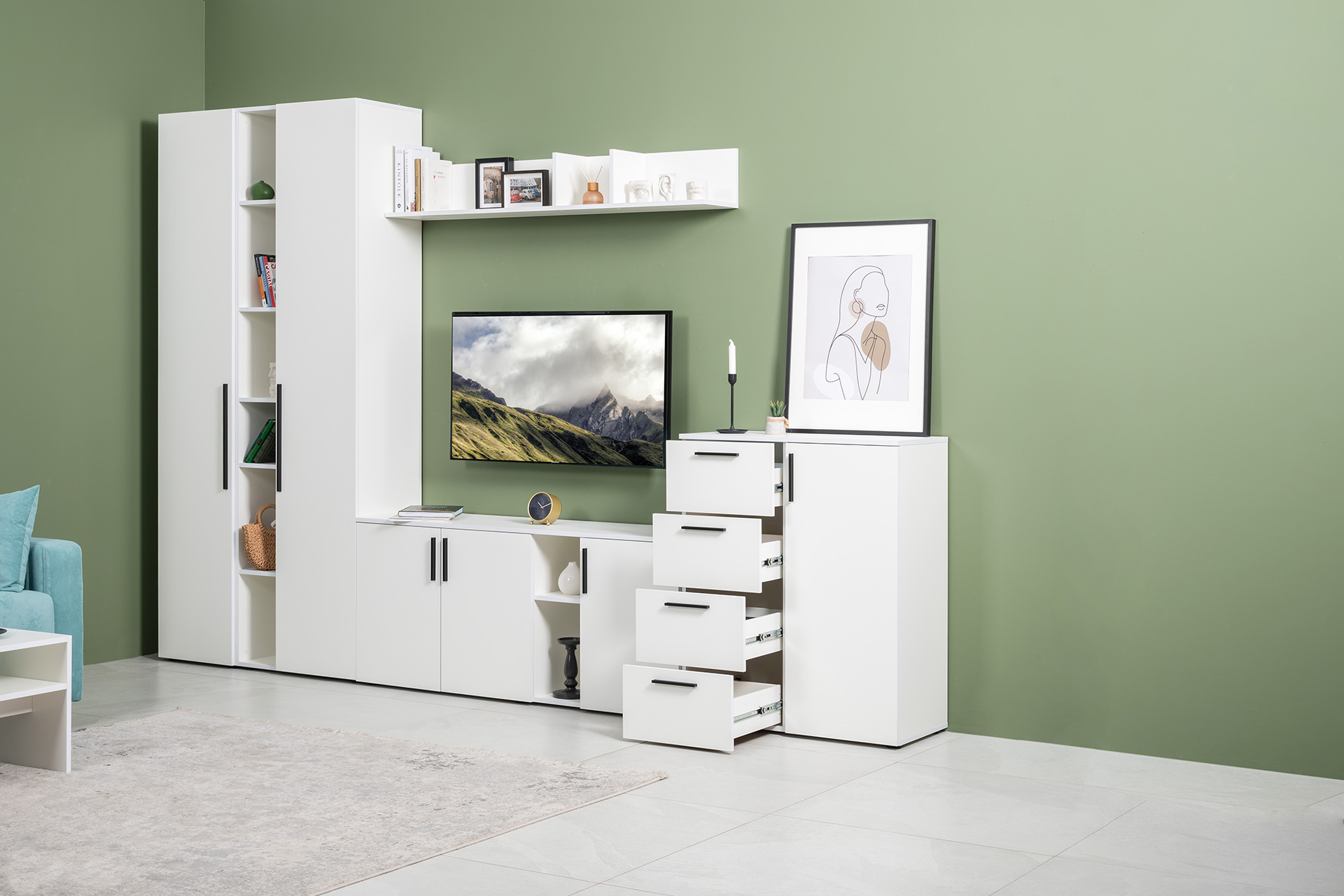 Гостиная Эйр доступна в двух цветовых решениях: белый и графит.