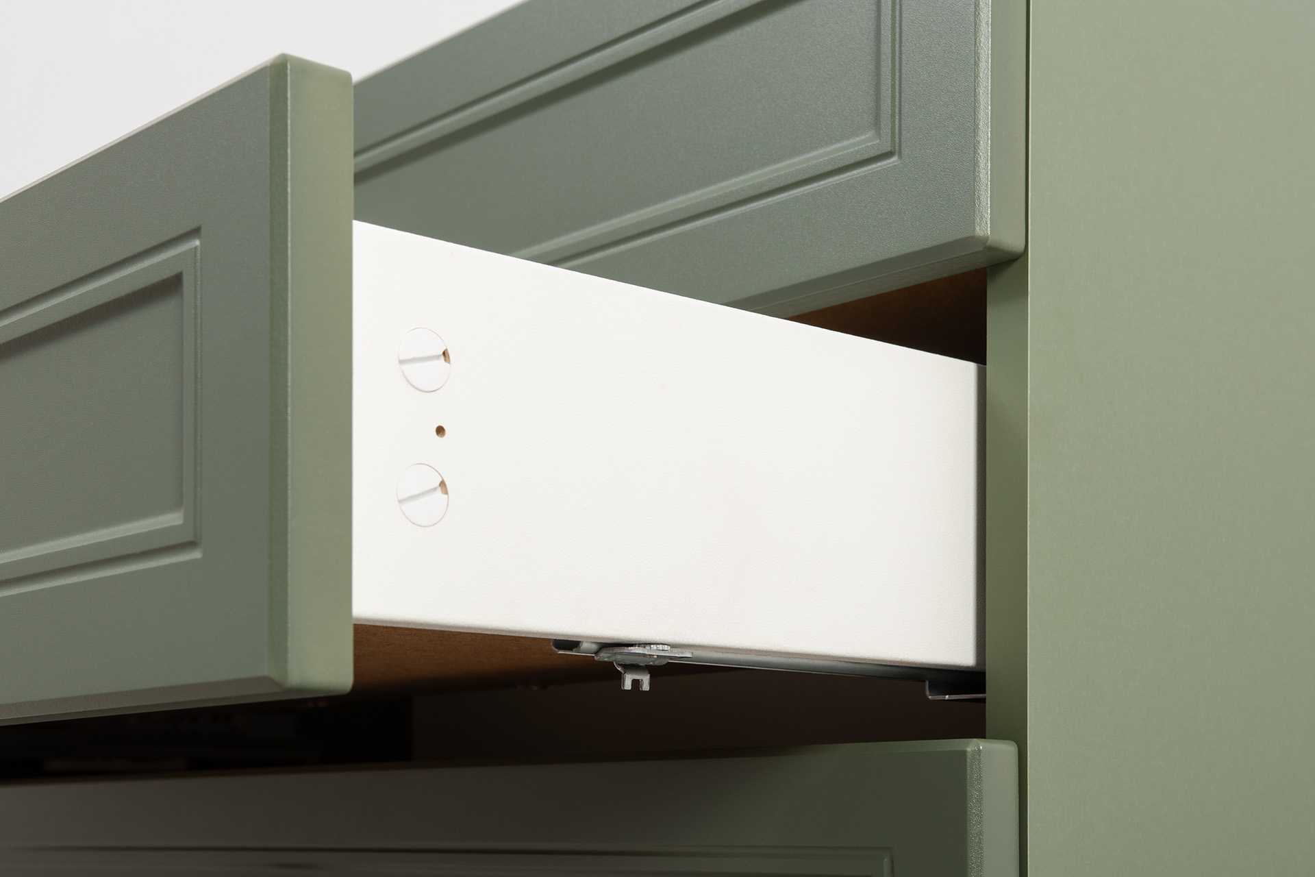 Комод Марион 16.249 дымчатый зеленый K521, олива шагрень AG 1050 ПВХ, белый PE шагрень