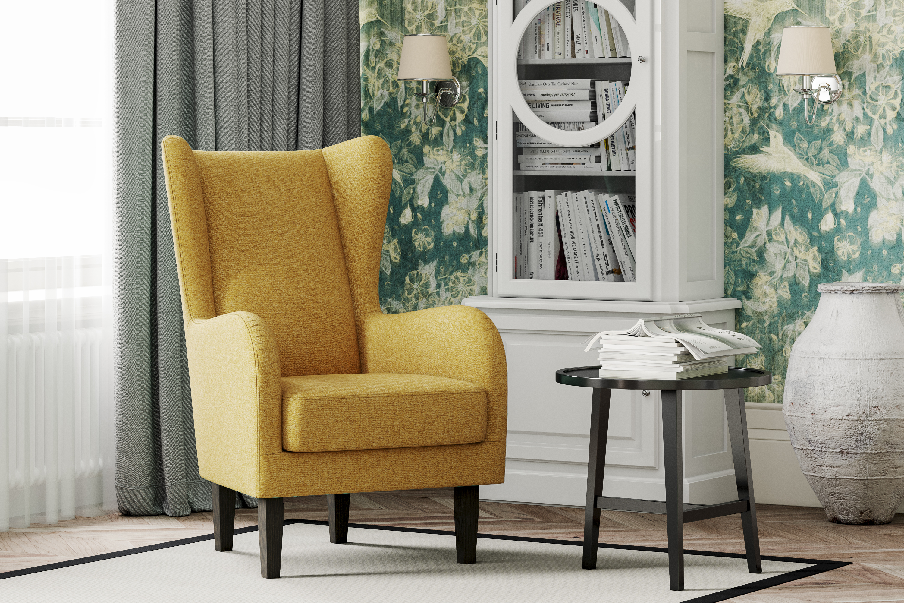 Модель «Шеффилд» - кресло с прямой спинкой для любителей классики. Каминное кресло ― самая классическая трактовка из всех существующих современных вариантов вольтеровского кресла. В нем остались высокие ножки, глубокая посадка, а прямая спинка и «ушки» с высокими подлокотниками прячут от суеты. В такое кресло легко сесть, но трудно подняться, настолько оно уютное. "Шеффилд" отлично подходит для классического интерьере, так и для современного: минимализм, лофт, ар-деко и даже как акцент в скандинавском и хай-тек стилях. Модель выполнена в тканях велюр и рогожка. Цветовые комбинации от молочно-белого до насыщенного изумрудного. Ножки выполнены из дерева.