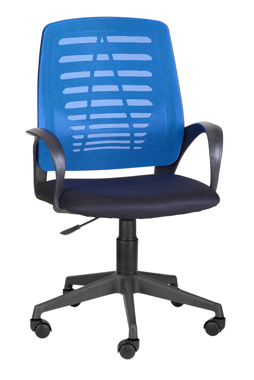 Кресло на колесах Ирис люкс обивка ткань-сетка TW сидушка черный, спинка синий, подлокотники пластик, крестовина пластик, механизм качания
