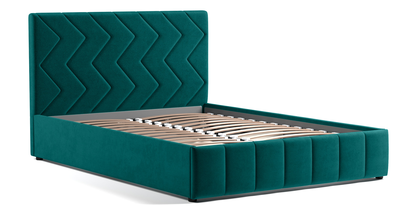 Кровать Милана 160 велюр сине-зеленый с ортопедическим основанием и подъемным механизмом