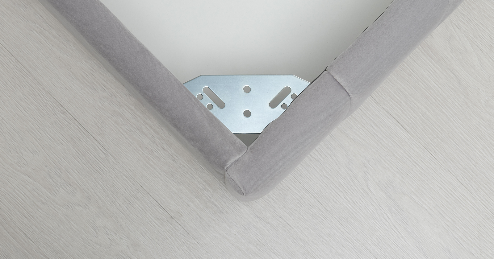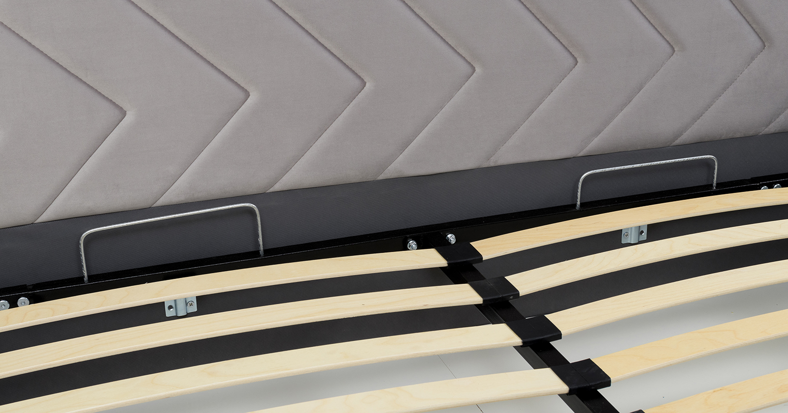 Основание кровати укомплектовано матрасодержателями. Жесткое кроватное дно из ЛДСП 16 мм. Задняя стенка изголовья выполнена в тех. ткани (спанбонд).