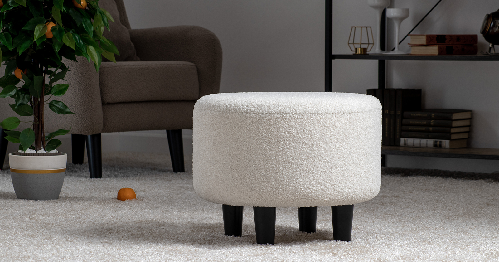 Пуф Шон выполнен в современном стиле. Пуф имеет мягкую, округлую форму. Может использоваться как дополнительное сиденье или подставка для ног. Универсальный предмет мебели, который можно использовать в прихожей, спальне, гостиной, детской и любом другом помещении. Ткань букле делает кресло особенно уютным и мягким.