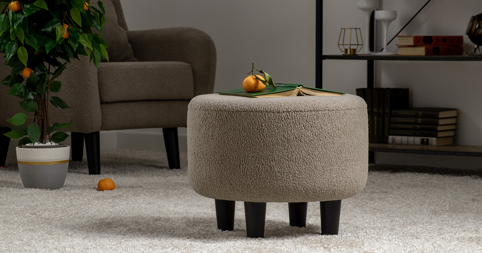 Ткань букле делает кресло особенно уютным и мягким