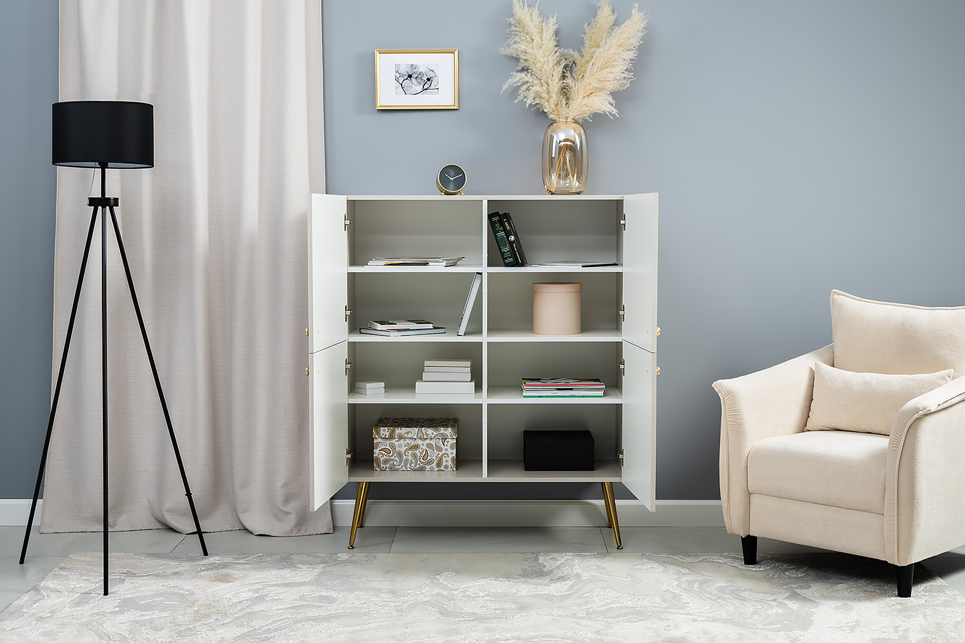 Шкаф навесной в гостиную Бэль 10.63 белый премиум, дуб золотой CRAFT