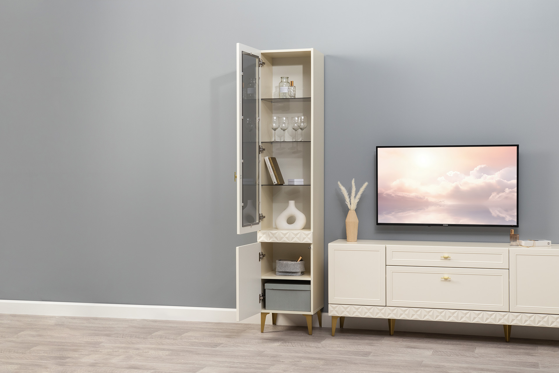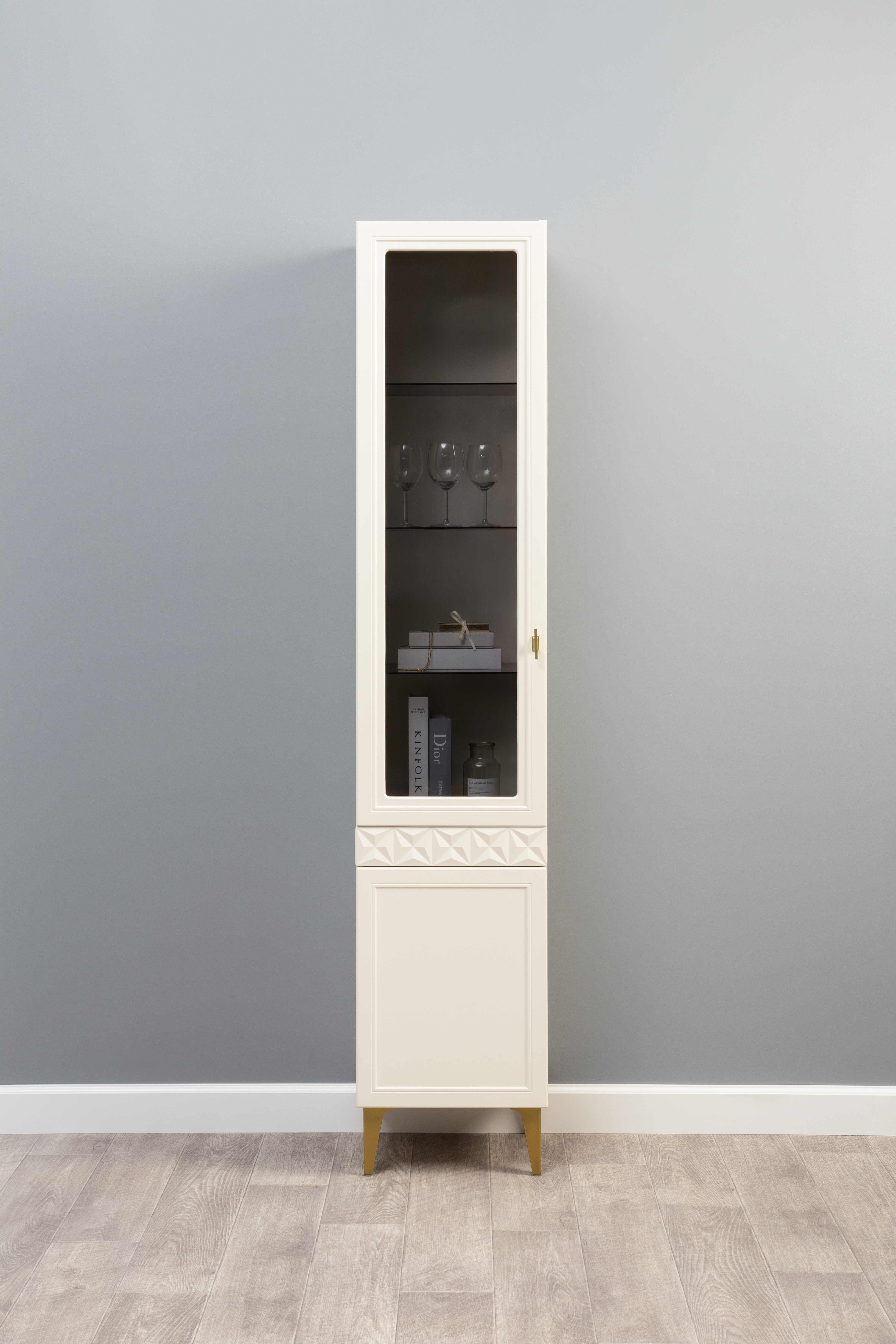 Шкаф-витрина Марион 16.397.01 слоновая кость С341 PE, слоновая кость 6898 ПВХ (собирается на любую сторону)