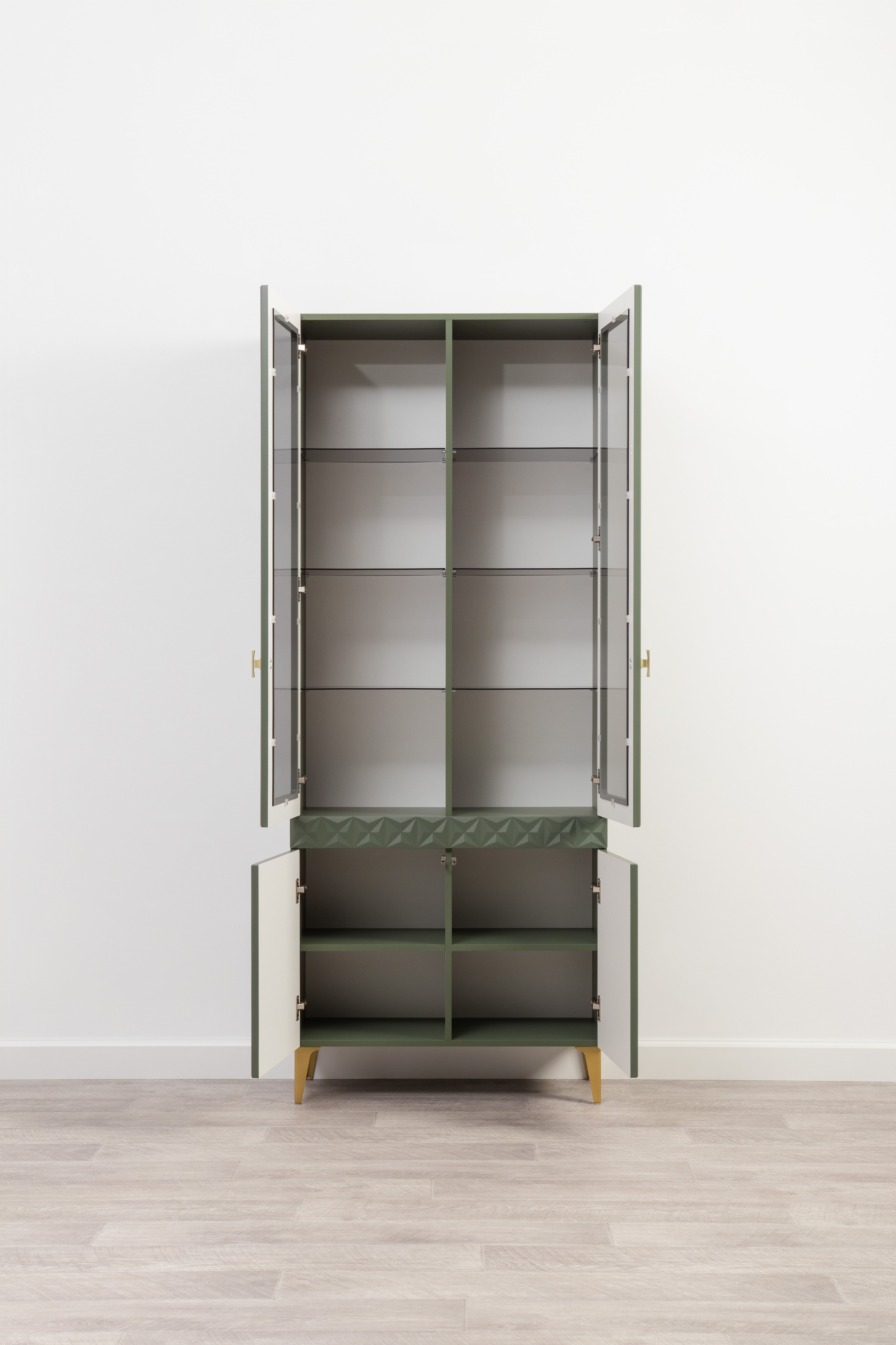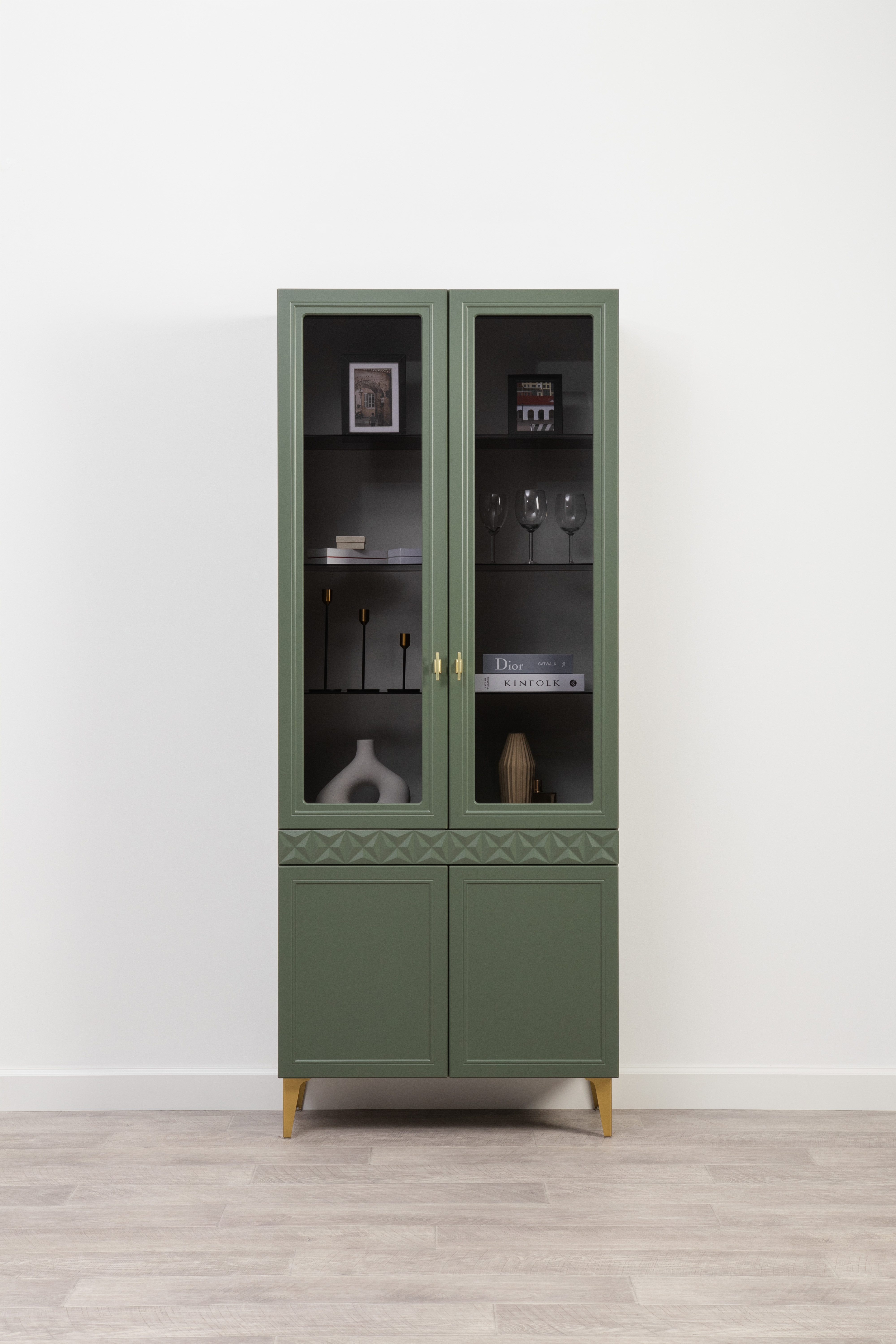 Шкаф-витрина Марион 16.397.02 дымчатый зеленый K521, олива шагрень AG 1050 ПВХ (собирается на любую сторону)