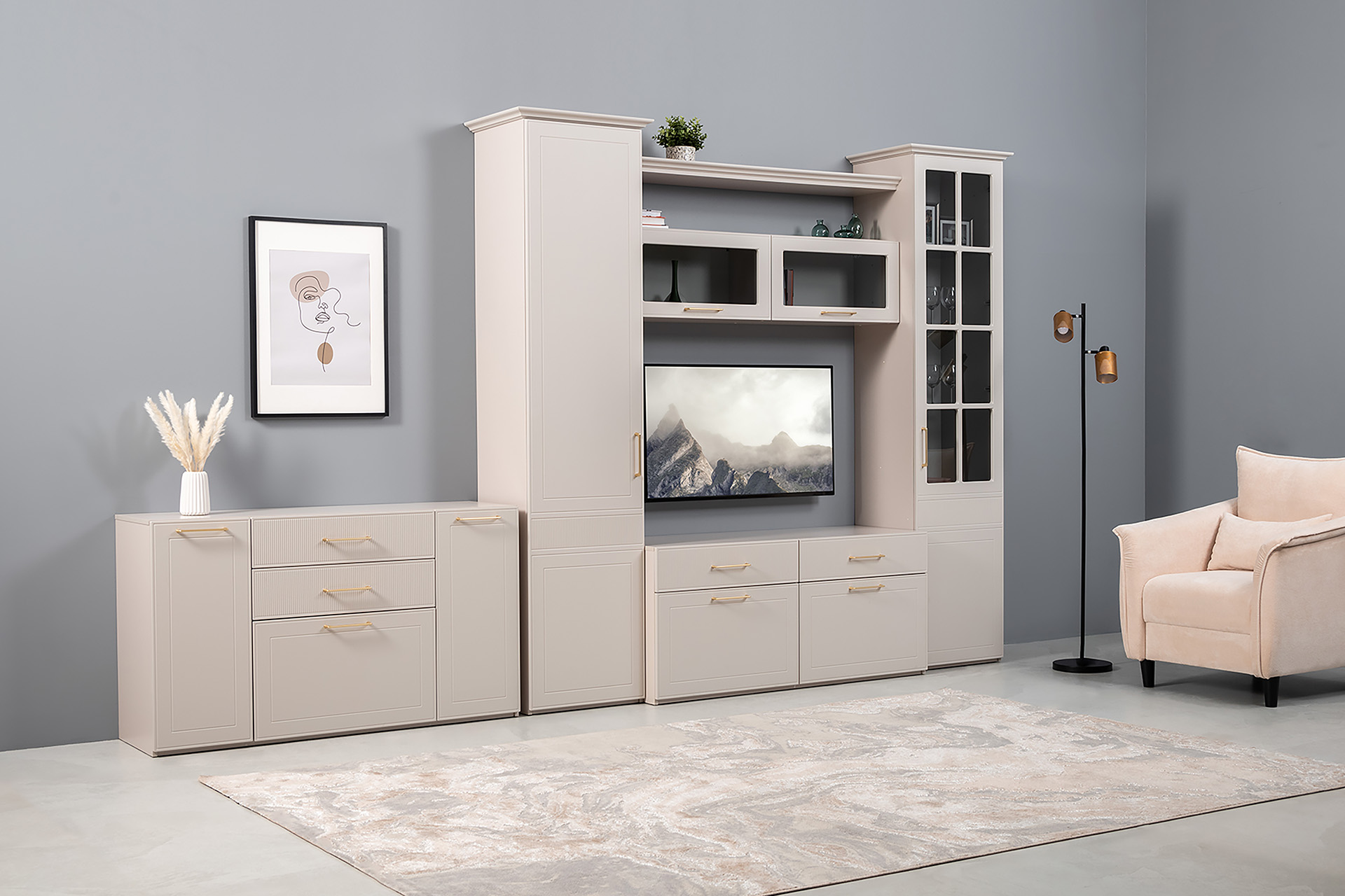 Шкаф-витрина Ричфорд 16.396 кашемир 5981 BS, моно керамика D166-2 ПВХ (собирается на любую сторону)