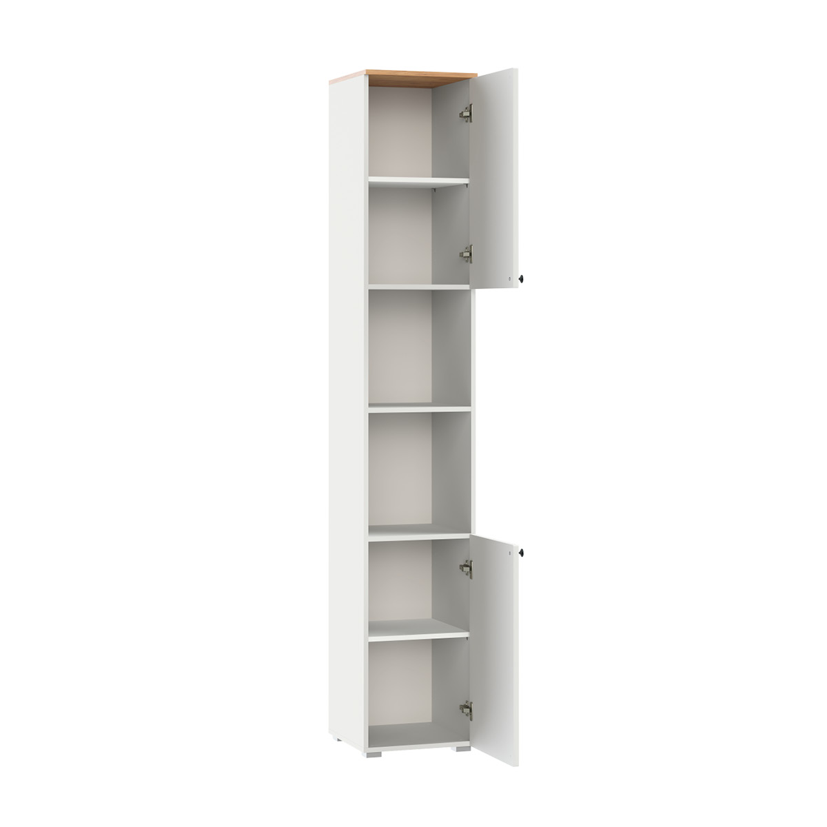 Стеллаж Остин 16.427 белый PE шагрень, дуб золотой CRAFT, белая шагрень 4101 ПВХ, сборка на любую сторону