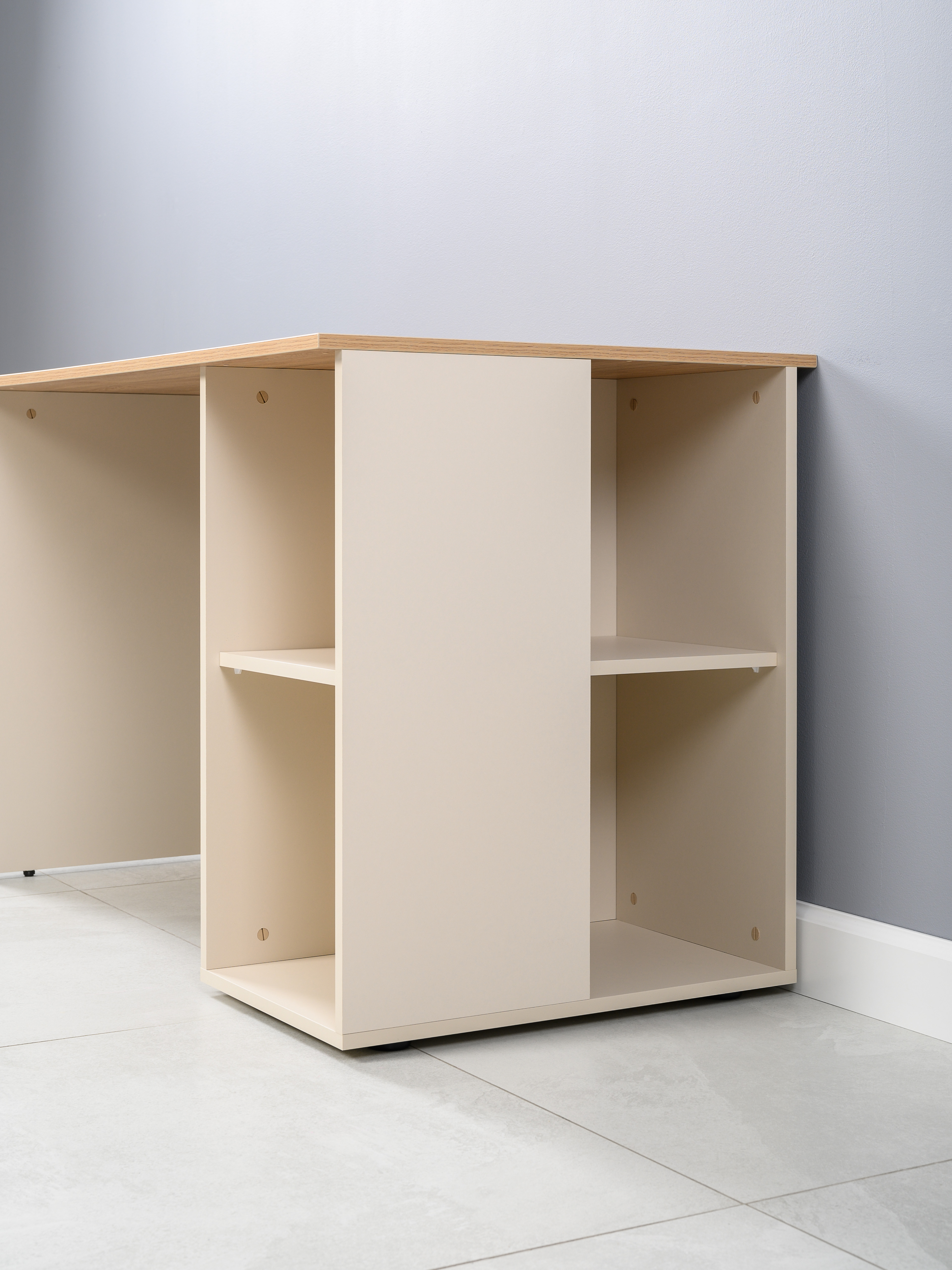 Торцевые полки можно собрать с наружной или внутренней стороны стола