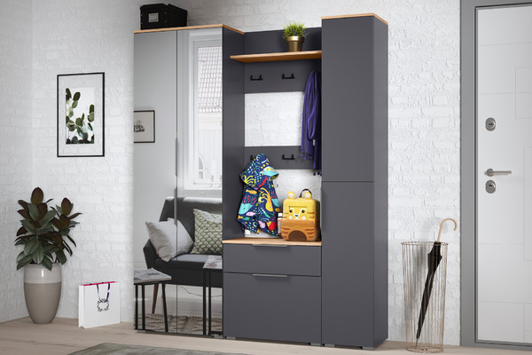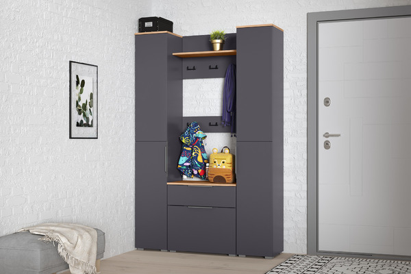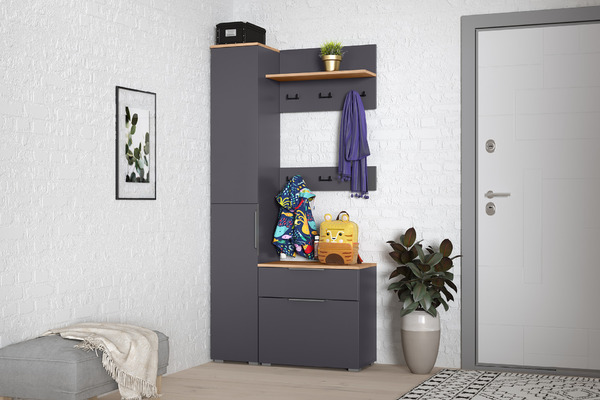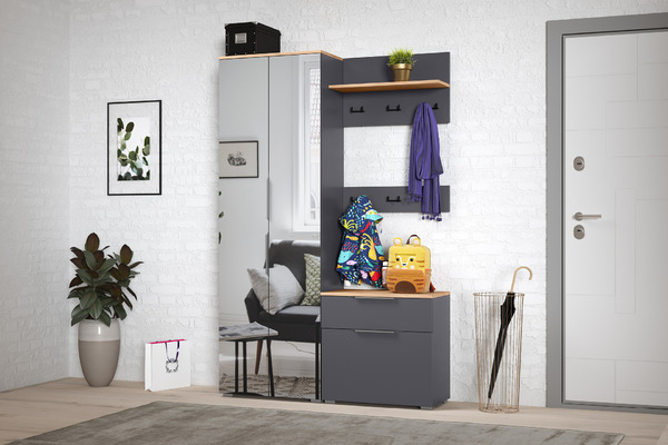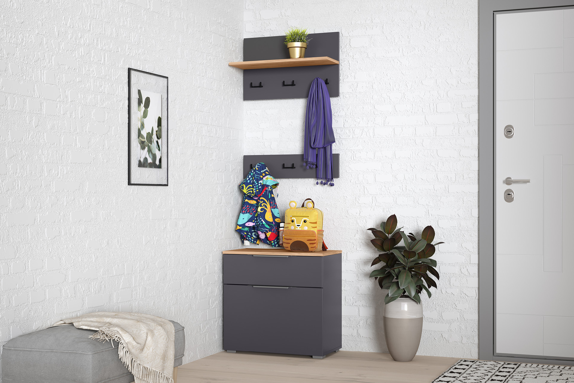 Тумба для обуви Октава 16.127 (обувница) серый графит 0162 РЕ, дуб золотой CRAFT, графит ZB 856-2 ПВХ