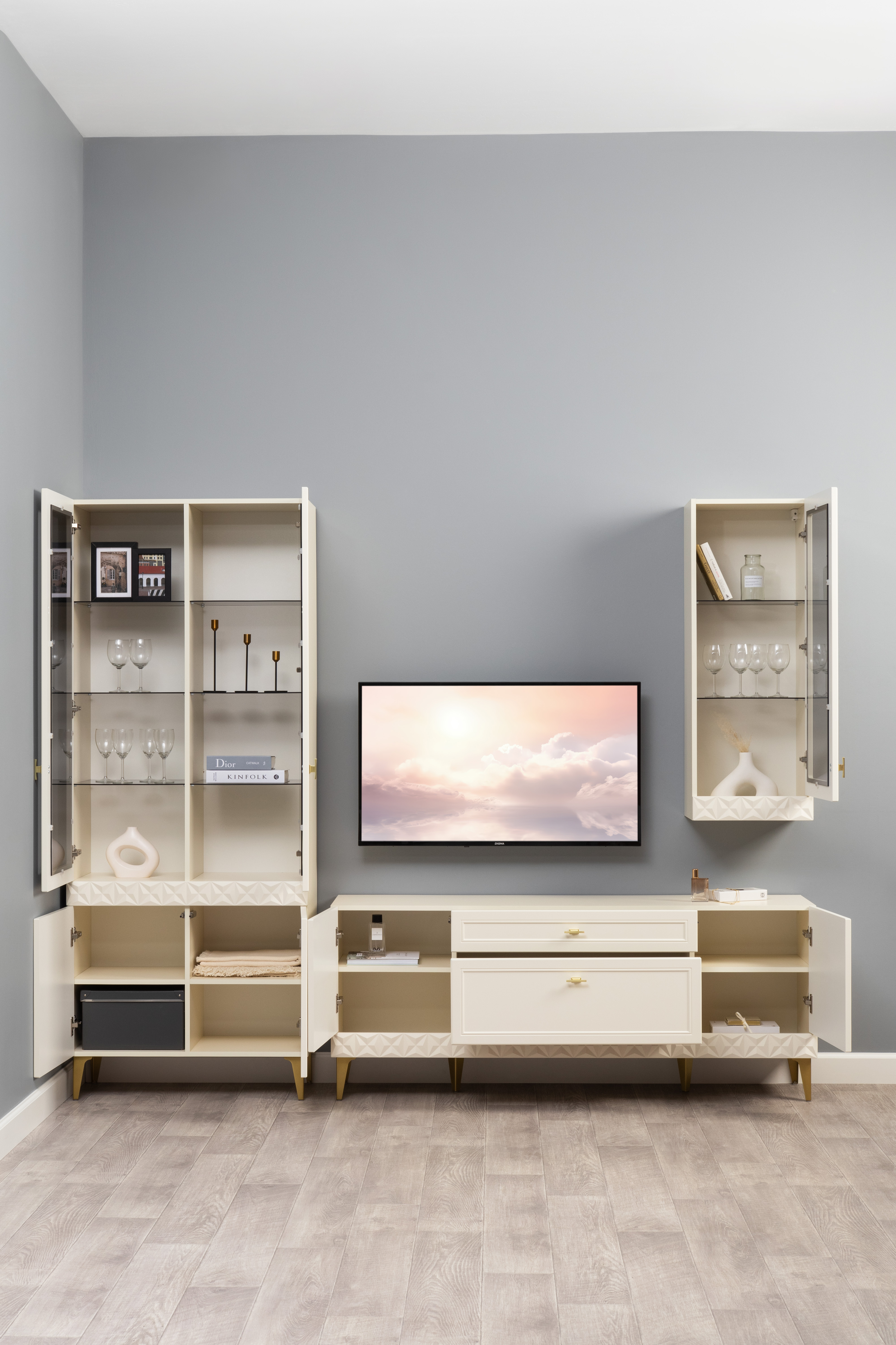 Шкаф-витрина Марион 16.397.01 слоновая кость С341 PE, слоновая кость 6898 ПВХ (собирается на любую сторону)