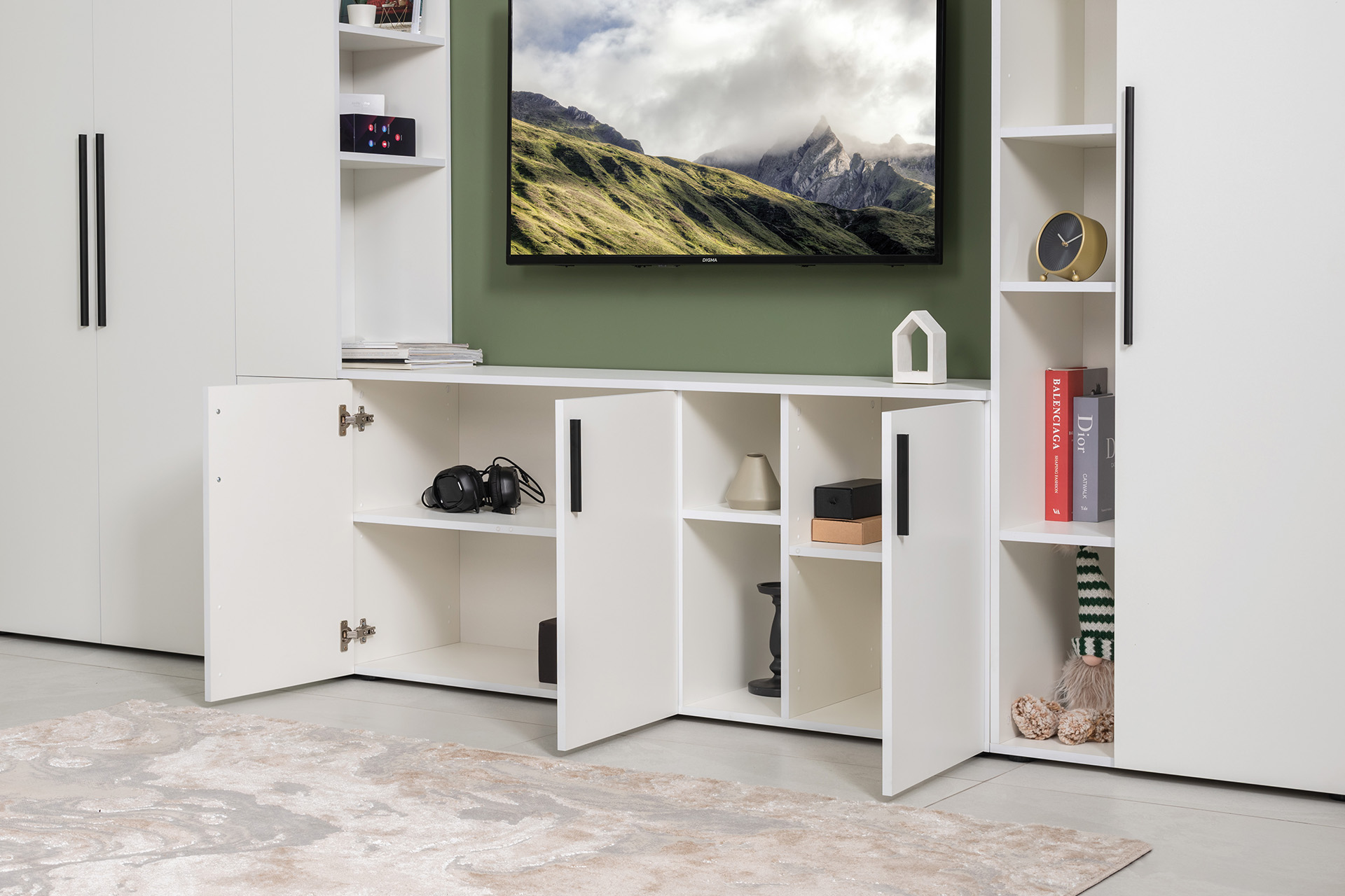 Тумба под ТВ в гостиную 13.267.03 белый PE шагрень, альберо, милк софт ПВХ