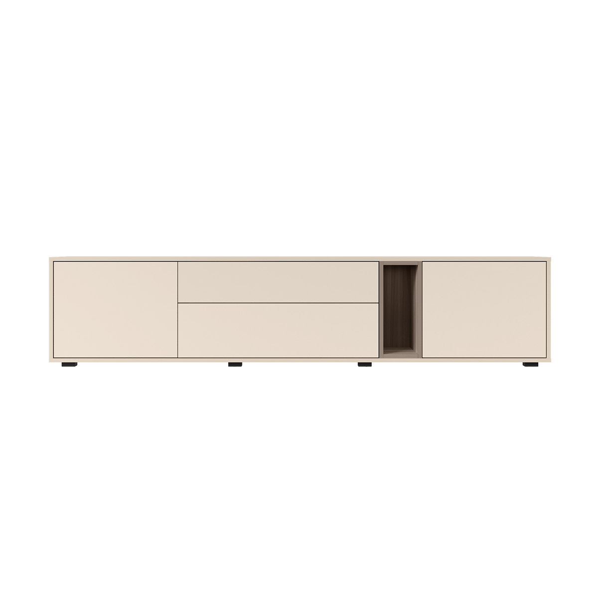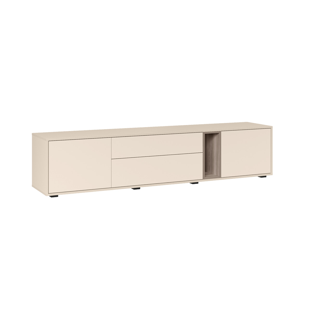 Тумба под ТВ в гостиную Петра 13.281 белый PE шагрень, милк софт ПВХ, бетон чикаго беж ПВХ