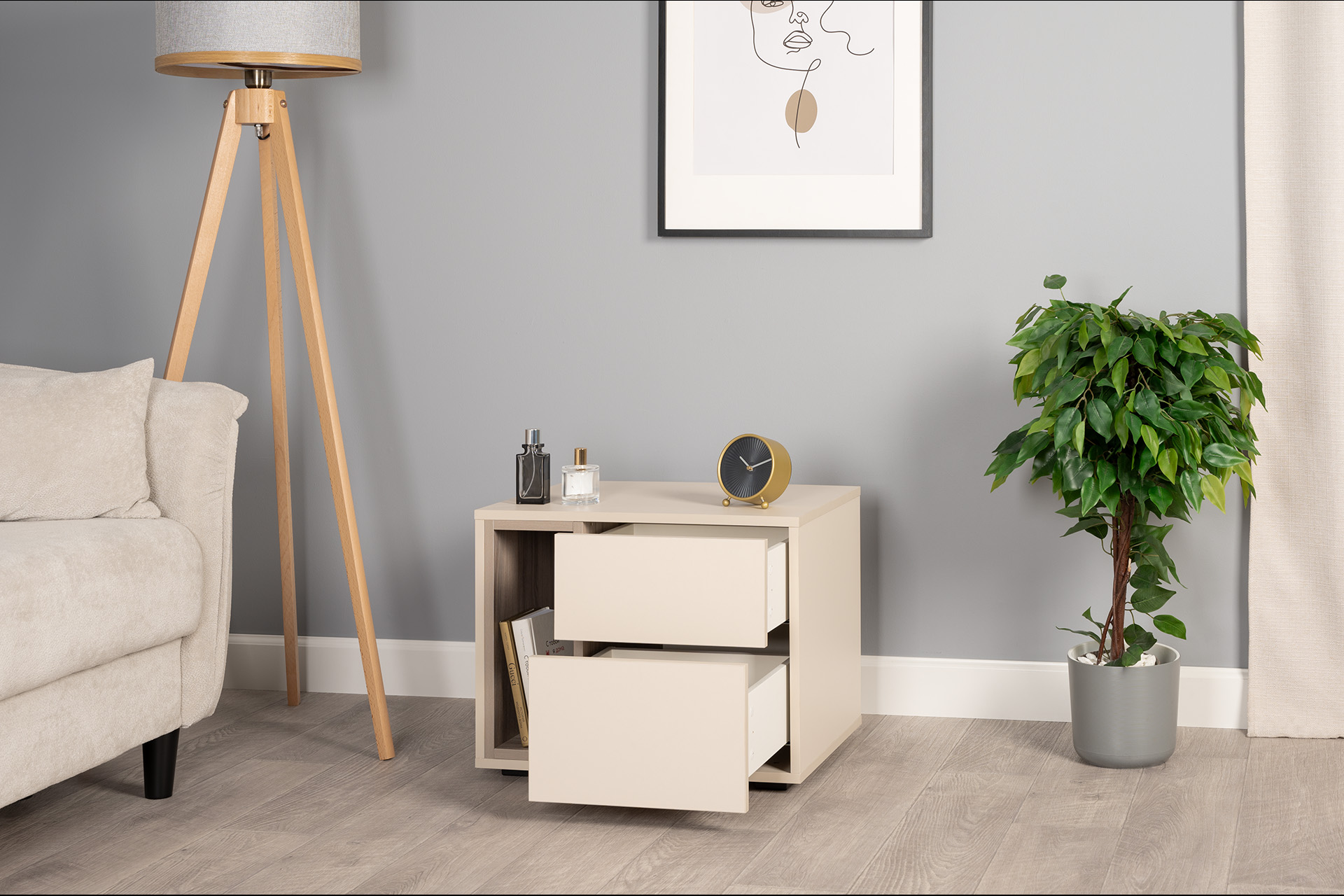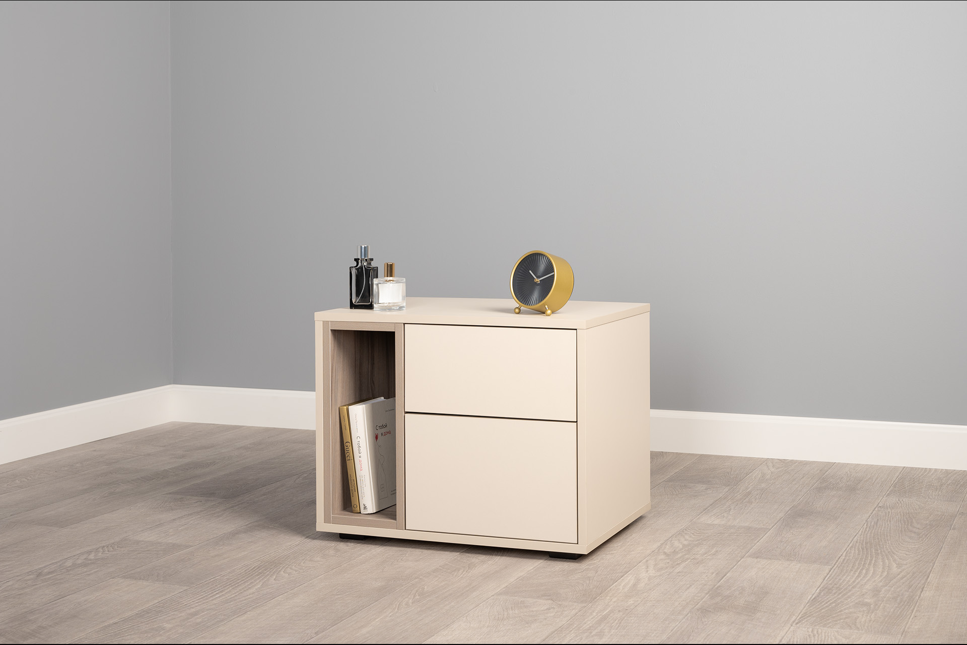Тумба прикроватная Лакки бук песочный, дуб тортуга ПВХ, белый глянец ПВХ