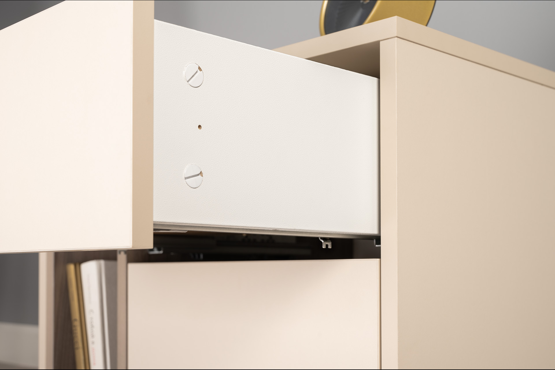 Комод Тайл 16.236 сатин 7045 SU, эмили блаш U9135, белый PE шагрень, собирается на любую сторону